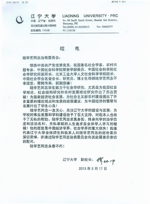 辽宁大学(唁电)