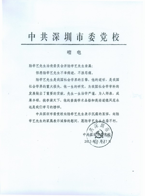 中共深圳市委党校(唁电)