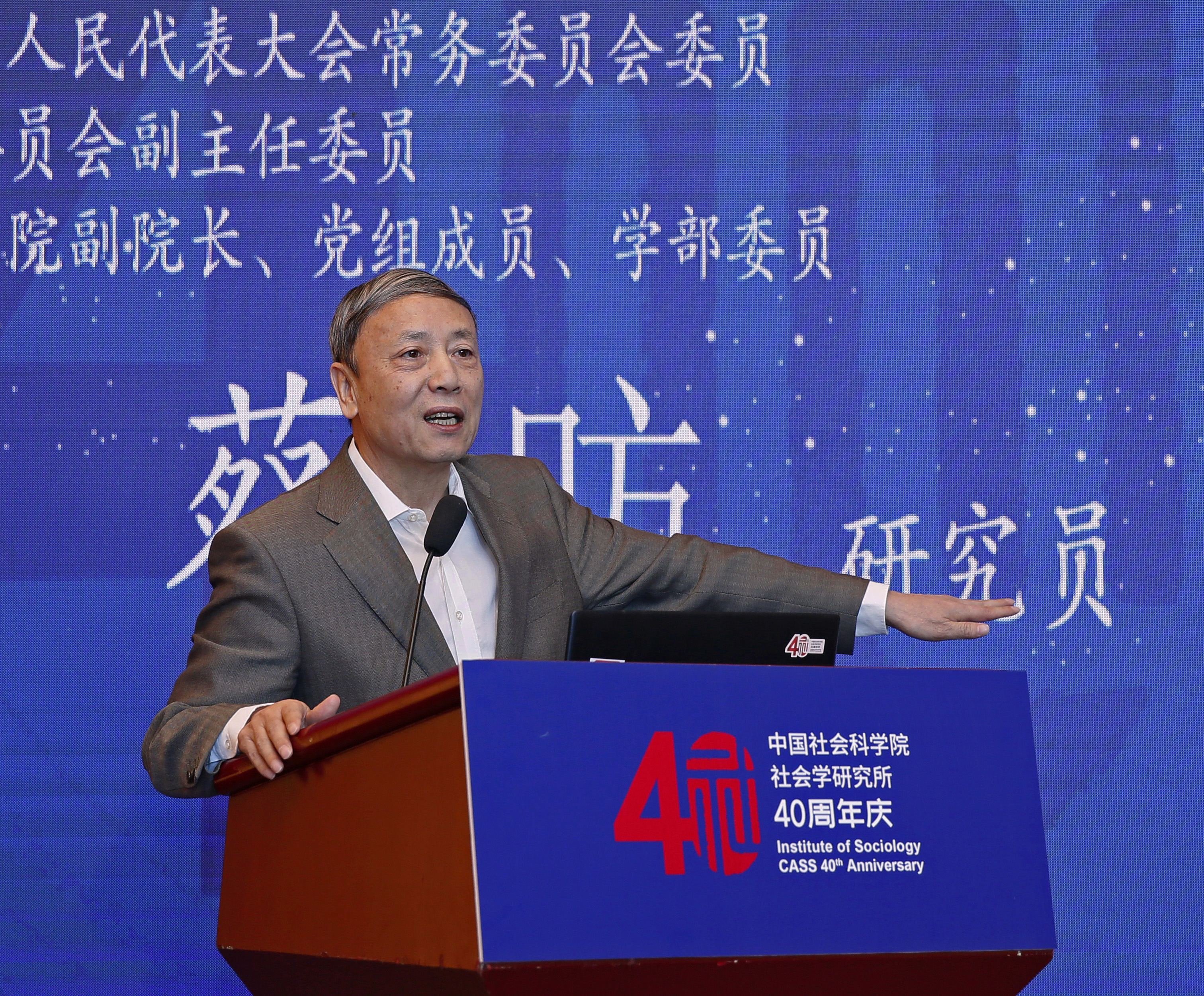 第十三届全国人民代表大会常务委员会委员、农业与农村委员会副主任委员、中国社会科学院副院长、党组成员、学部委员蔡昉发表主旨演讲